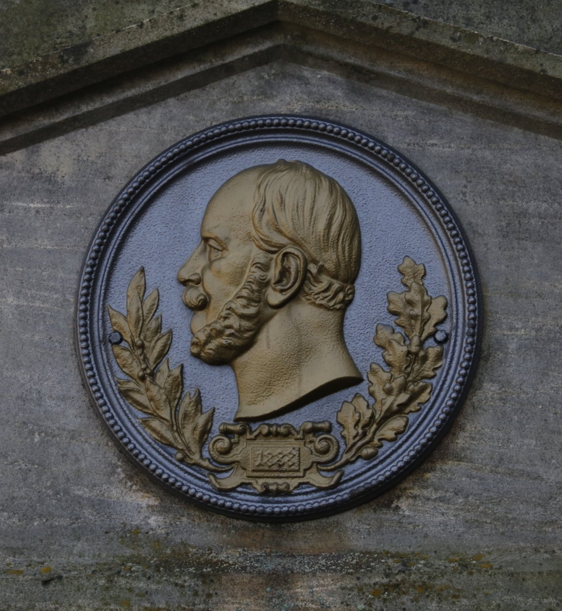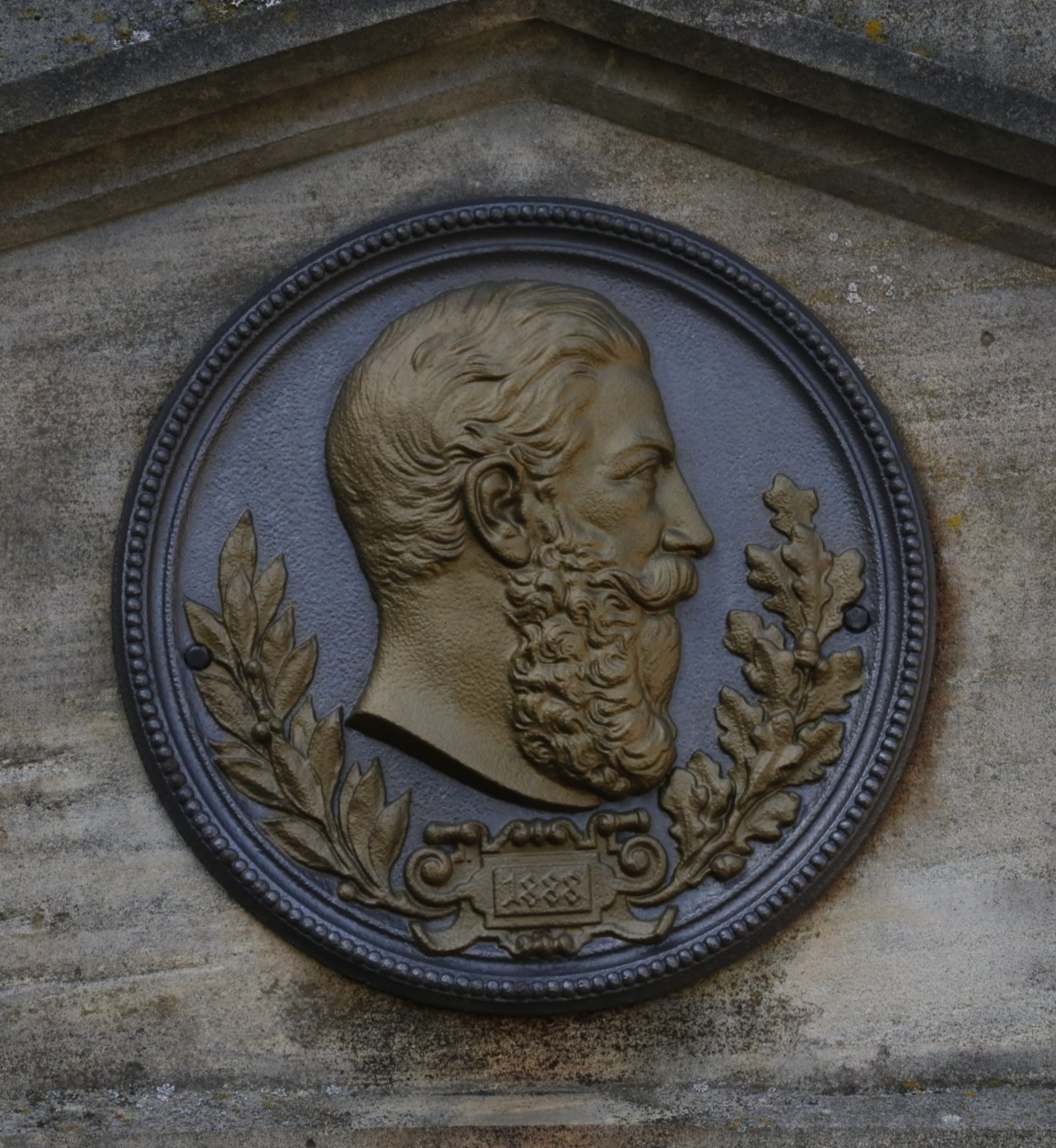 Im Auge des Betrachters liegen aber die beiden Portrait-Reliefs, die allem Anschein nach Wilhelm I. auf der linken und Friedrich den III. auf der rechten Seite abbilden.